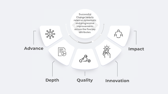 We focus on shifting mindsets that will drive change in the behavior and the resulting processes that create change throughout the organization.
